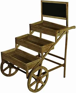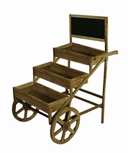 Wooden Cart with wheels - EnmCrafts.com Wooden Cart with wheels. Our wooden cart displays are an elegant and beautiful way to display a wide variety of products. The added wooden wheels make them very mobile and easy to reposition. Perfect for flowers, baked goods as well as sampling purposes. You are sure to catch your customers attention with these amazing carts.