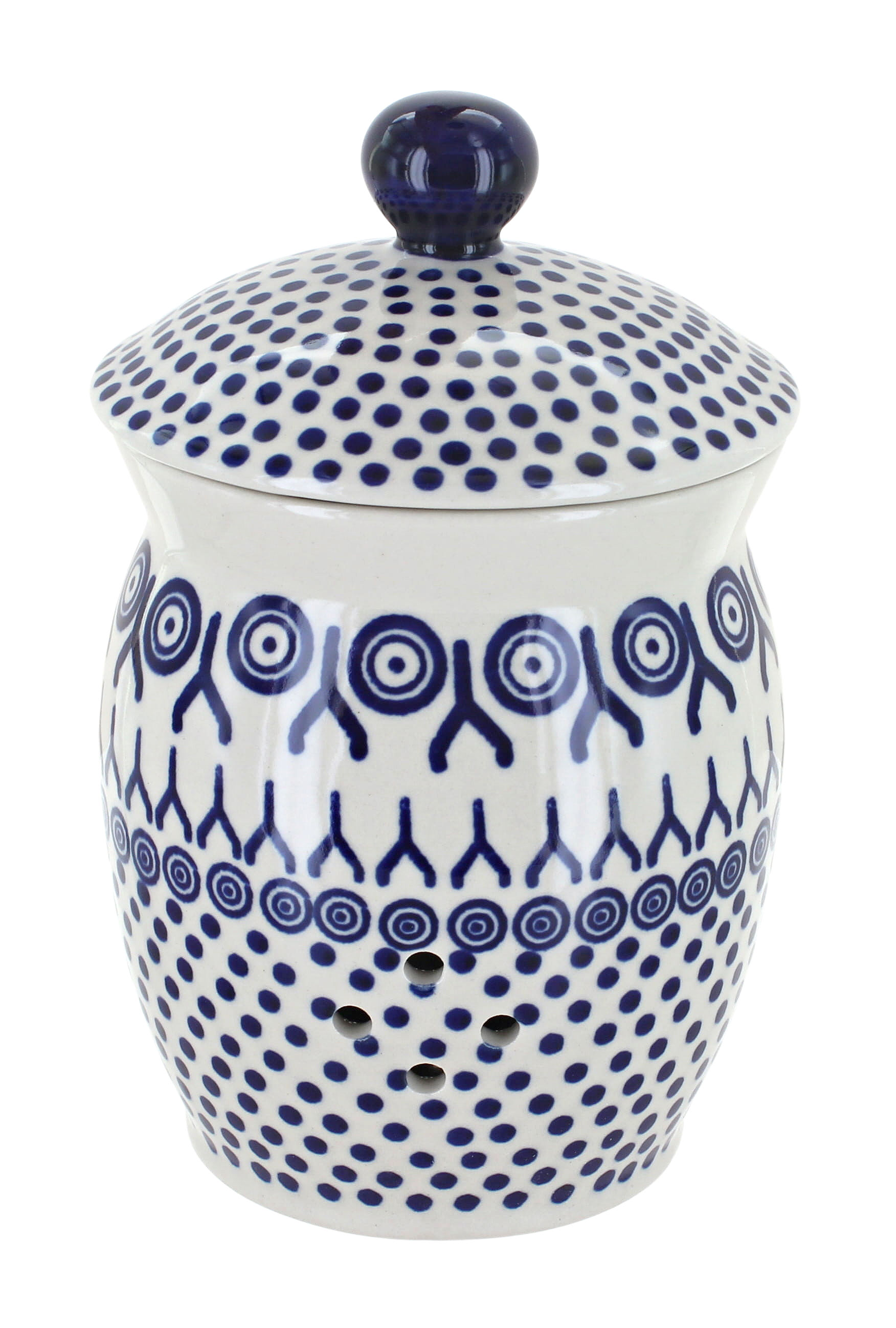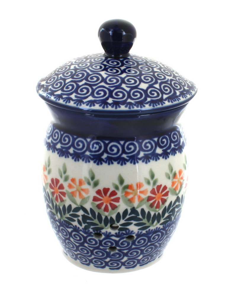 Polish Pottery Garlic Keeper - The Happy Cook Polish Pottery Garlic Keeper. Product Description. Due to the vast amount of patterns that are available in Polish Pottery we are currently unable to picture the specific piece and patterns available. If you are interested in color and pattern availability please call the store (434)977-2665 for more information. ...