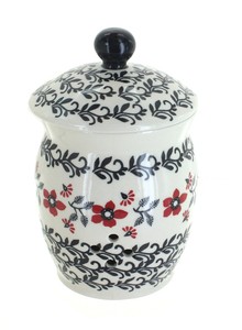 Blue Rose Polish Pottery Red Daisy Garlic Keeper We don't know when or if this item will be back in stock. Hand made in Poland Safe to use in microwave, dishwasher, freezer, oven No lead or cadmium A great way to store your garlic and show off a beautiful piece of pottery! 7.25" tall - 4.25" wide Stoneware Special offers and product promotions