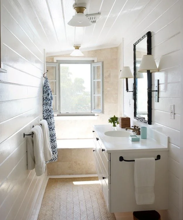 40 Modern Bathroom Design Ideas (Pictures) - Designing Idea Brown travertine stone tiles run along this modern bathroom’s walls and floors. A glass partition separates the rest of the bathroom from the boxy white bathtub with wall-mounted chrome-finished faucets. A narrow hallway leads to the main bedroom and features smaller black painted wood cupboards for storage.