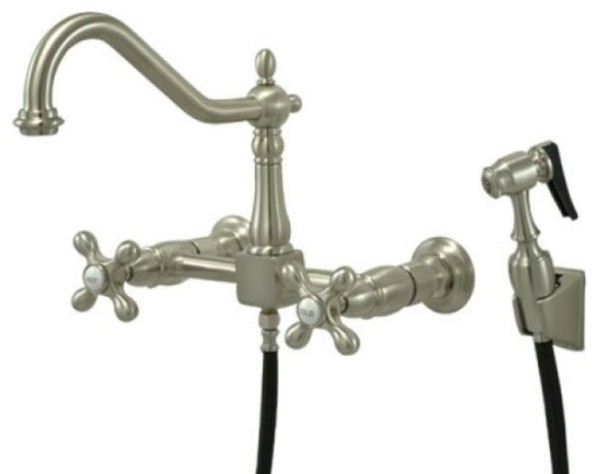 Side Spray Wall Mounted Kitchen Faucets - Wayfair Heritage Double Handle Wall Mount Bridge Kitchen Faucet with Metal Cross Handles and Side Spray. by Elements of Design. From $227.05 $389.95. ( 19) Free shipping. Sale.