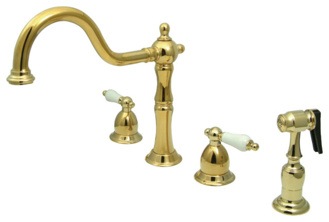 Satin Nickel Heritage Kitchen Faucet With Solid Brass Side Sprayer ... Pull-Out Sprayer Kitchen Faucet - Kingston Brass $175.99 Modern Spiral Pull Down Kitchen Faucet Chrome - Kingston Brass $307.99 Widespead 4-Hole Solid Brass Kitchen Faucet Oil Rubbed Bronze - Kingston Brass $45.49 Restoration Water Filter Kitchen Faucet Chrome - Kingston Brass $225.99 - $270.99 Victorian Widespread Bathroom Faucet - Kingston Brass