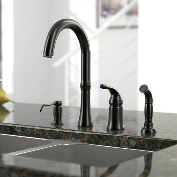 10 Essential List Of Best Pull Down Kitchen Faucet With Soap Dispenser ... Single-post mounting ring and optional deck plate are both included with this single hole kitchen faucet with soap dispenser. 1, 2, 3, or 4-hole installation; soap dispenser optional. 36" Supply lines with 3/8" female connections included. Spot Defense finish resists watermarks. Wipe Clean nozzles clean off easily with the wipe of a finger.
