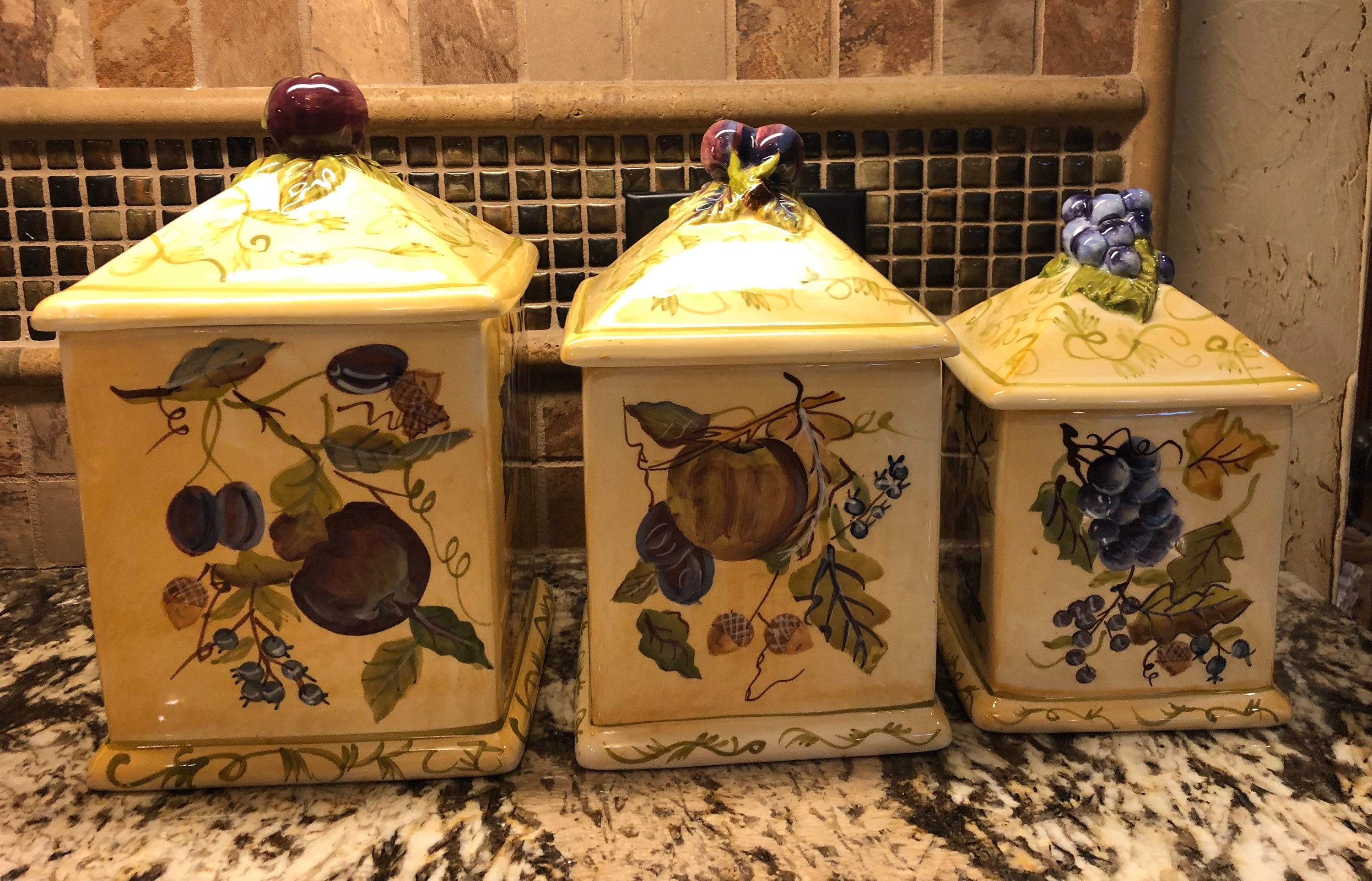 Gourmet Classics 5-piece Grilling and Kitchen Set with ... This 5 piece silicone set is versatile and perfect for either baking or grilling. The two oven mitts offer extended 17" terry-lined cuffs to protect your arms while working over the grill, and their full-coverage silicone grabbing surface will let you tackle temperatures up to 500F, in or out of the house. Kitchen Canisters and Canister Sets | Touch of Class Our diverse kitchen canisters play to a variety of themes and designs; bring elegance to a Tuscan-Italian theme with a set of canisters fashioned to resemble old Mediterranean architecture. Bottles of wine amid bunches of grapes will impart a vineyard feel to your decor.