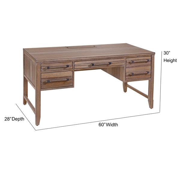 Proper Desk Dimensions for Sitting and Standing Desks (Charts) The standard desk width dimensions are 48 to 72 inches wide, while the standard desk depth dimensions are 24 to 36 inches (or two to three feet) deep. So, on average, the standard desk dimensions are 29.5 inches in desk height, by 60 inches (or five feet) wide, by 30 inches deep. A few comments about the diagrams and tables above: