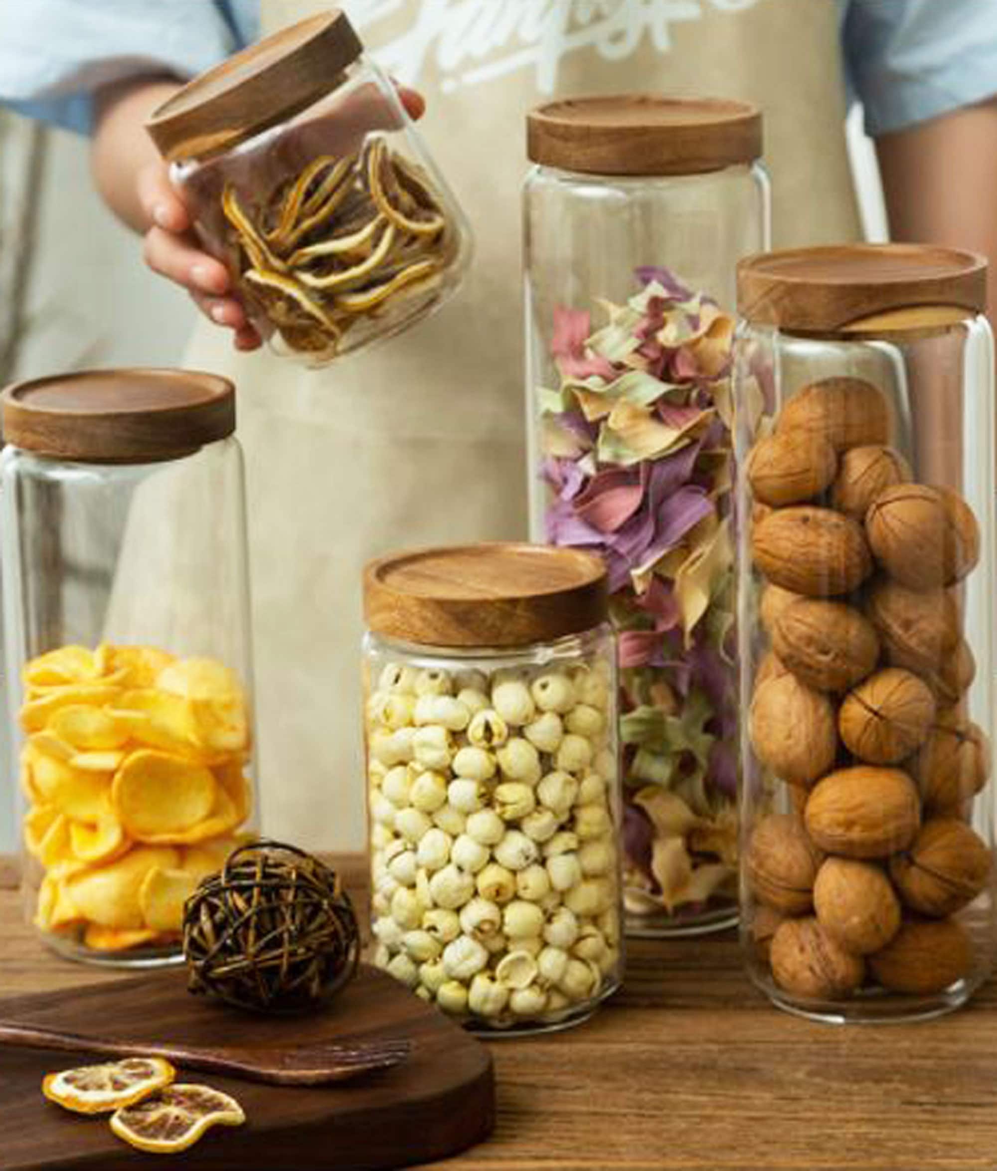 Glass Canister Set Wooden Lids - Walmart.com Glass Storage Jars with Bamboo Wood Lids,500ML /17.6oz Glass Air Tight Kitchen Food Cereal Containers for Storage, Canister Set Ideal for Flour, Sugar, Coffee, Candy, Spice Jars Coffee, Candy EZOWare 15.2oz / 24oz Clear Glass Jars Air Tight Canister, 6 Piece Kitchen Food Storage Container Set with Natural Bamboo Lids for Candy Cookies Rice ...
