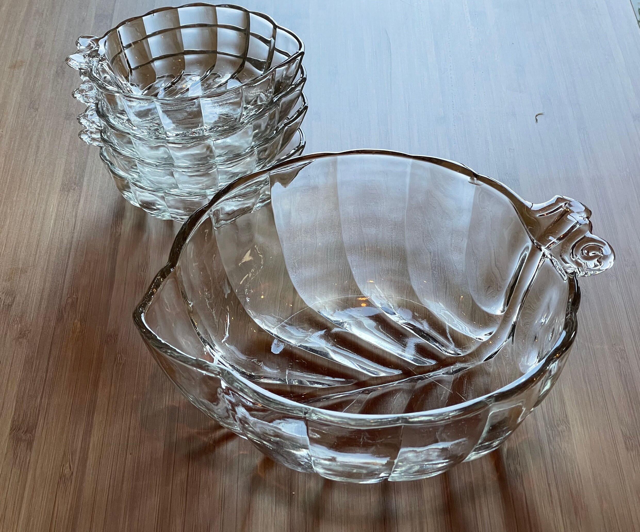 Clear Glass Bowls - Etsy Vintage Open Work Weave Lace Glass Vase Handblown Clear Glass Spun Lace Ruffled Bowl. VintageQuarters. (181) $225.00. Vintage Anchor Hocking Imperial Candlewick pattern "Boopie" clear glass fruit or dessert bowl. Set of 4 bowls. EltoniesTreasures. (127)