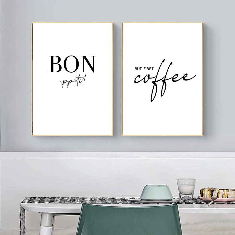 Kitchen Art Decor But First Coffee Posters Bon Appetit Print Black White Wall Art Canvas Painting Picture For Dining Hall CH090