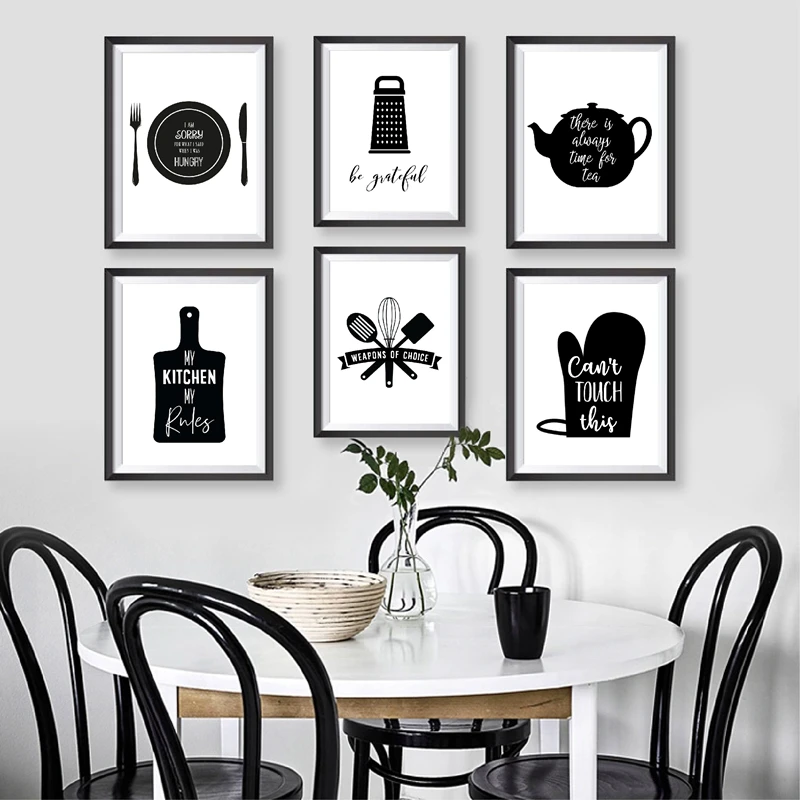 Kitchen Wall Art Canvas Painting Kitchenware Kitchen Typography Posters And Prints Black White Wall Pictures Kitchen Decoration