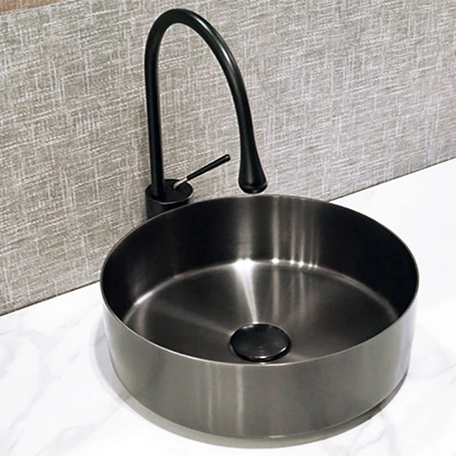 Round - Stainless Steel - Bathroom Sinks - Bath - The Home Depot AKDY Round Stainless Steel Vessel Sink with High Arc Faucet and Pop-Up Drain in Brushed Graphite Black. Model# BS001-1-3-6 $ 299 99 /box $ 599.99. Save $ 300.00 (50 %) MR Direct Tri-Mount Bathroom Sink in Stainless Steel. Model# 420 (16) $ 105 00. Eden Bath Black Stainless Steel Round Vessel Sink with Drain.