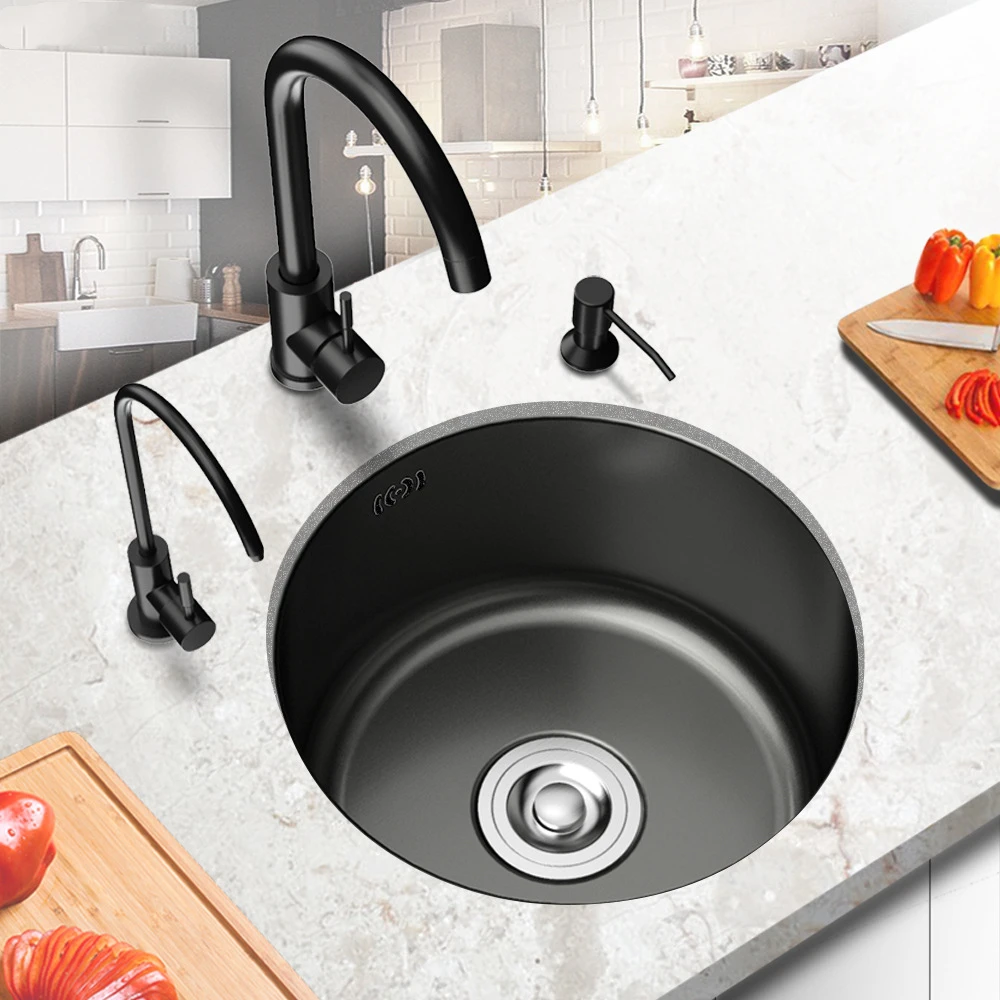 Nano Black Stainless Steel Kitchen Sink Bar Mini Small Number Round Sink 304 Under The Table Embedded Single Sink 40 CM