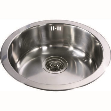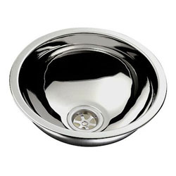 Round Stainless Steel Sinks - AhoyCaptain.com Round Stainless Steel Sinks. Our stainless steel sinks are a practical, attractive addition to any galley or head. Round sinks feature a bright, mirror-polished finish that is sure to enhance any head area. All sinks include strainer, drain plug, cap and chain. Reference. Internal Dimensions . 18371 18372 18373
