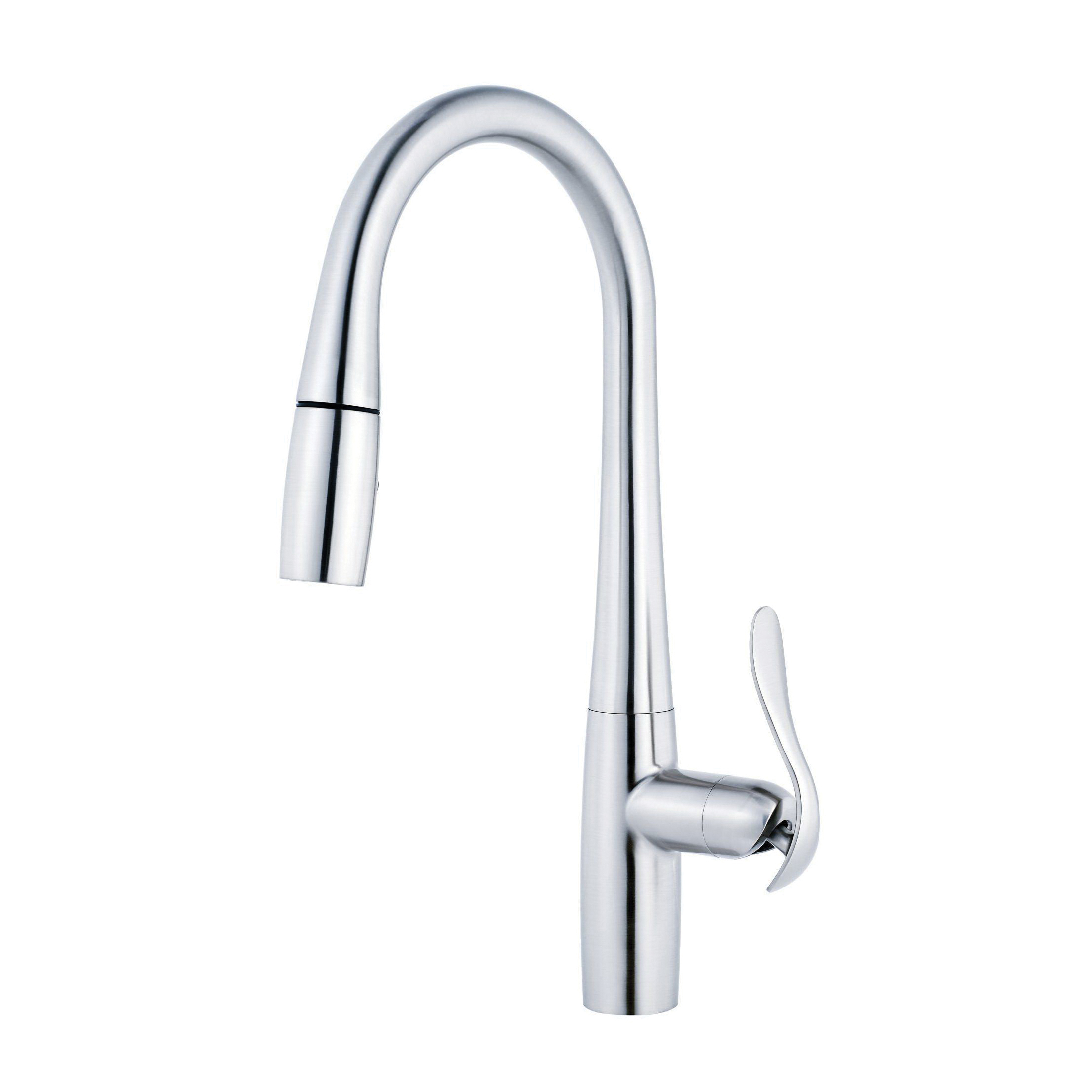 Pull Down Kitchen Faucets - Kitchen Faucets - The Home Depot Sous Pro-Style Single-Handle Pull-Down Sprayer Kitchen Faucet in Vibrant Stainless Inspired by the design of professional kitchens, Inspired by the design of professional kitchens, the Sous pull out kitchen faucet will bring to life your inner chef. It includes assembled faucet, 29-1/2 in. supply lines, soap/lotion dispenser, and deck plate.