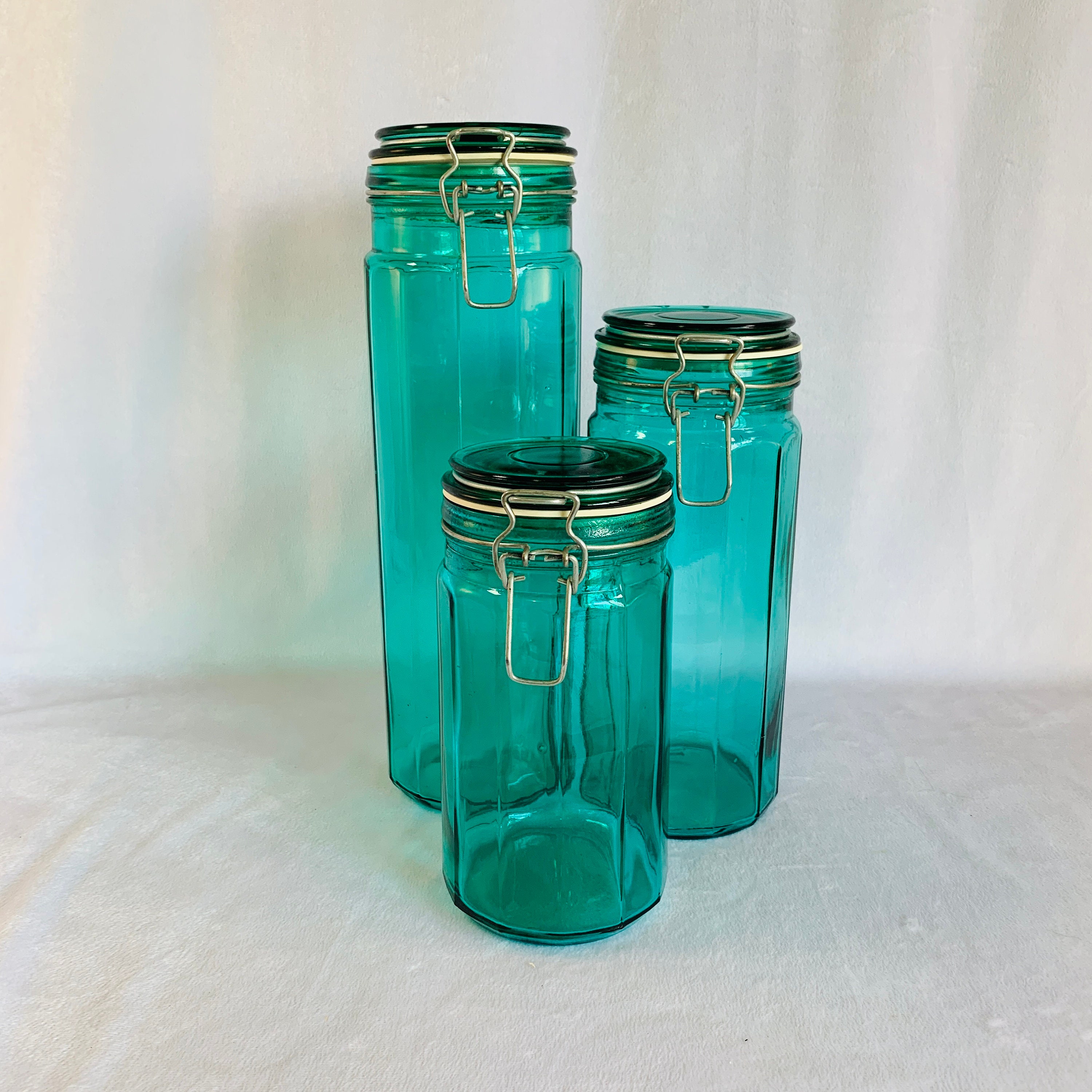 Glass Jar Clamp Lid | Etsy Set of 4 Mini Clamp Jars Clear Glass Green Ceramic Lid 3 1/2"H x 2"W, FinesseisUs, (53) $22.00, Vintage Clear Glass Jars Airtight Metal Wire Bail Glass Lid, LeHeathersBoutique, (33) $10.80, $12.00 (10% off) Fascinating 3/4 Liter Round Italian Storage Jar with Jar Rubber and Clamping Lid, UncleEdsAntiques, (59) $7.95,