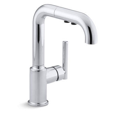 K-7505-BL,CP,VS Kohler Purist® Pull Out Bar Faucet with ... - Wayfair Designed to accommodate extra-thick counters, this Purist kitchen faucet combines minimalist style and simple-to-use features. Featuring a single lever handle, the high-arch swing spout includes a pull-out spray head with two flow options and a pause function to make kitchen tasks easier. What's Included? Spray Drain Assembly/ Waste Features