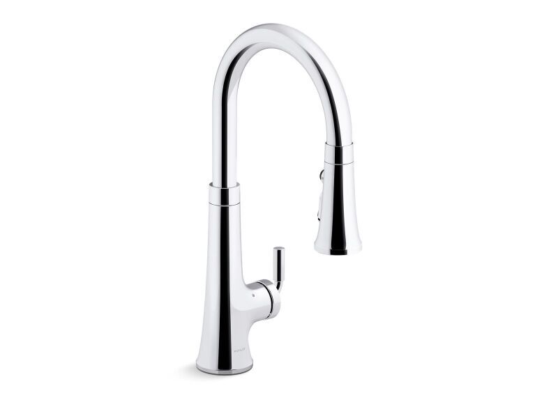 K-7505 | Purist Single-Handle Pull-out Spray Kitchen Sink ... - KOHLER High-arch gooseneck spout and 360-degree spout rotation offer superior clearance for filling pots and cleaning. Single lever handle is simple to use and makes adjusting water temperature easy. Temperature memory allows faucet to be turned on and off at the temperature set during prior usage. 1.5 gpm (5.7 lpm) maximum flow rate at 60 psi (4.14 bar).