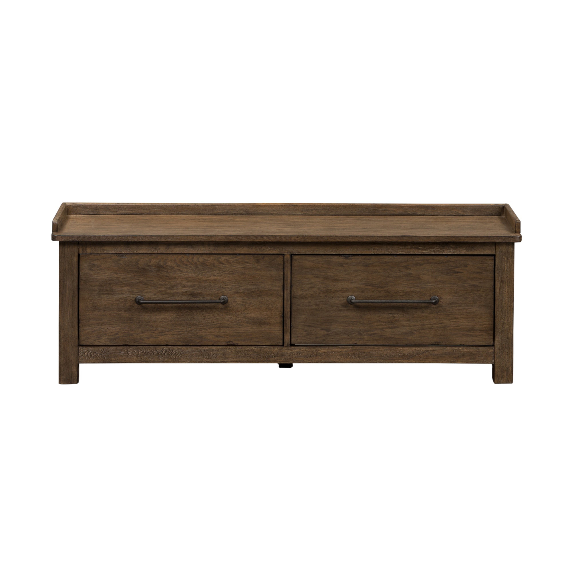 D316-6PC 6 pc Darby home co lona rustic dark oak finish wood storage pedestal dining table set with bench