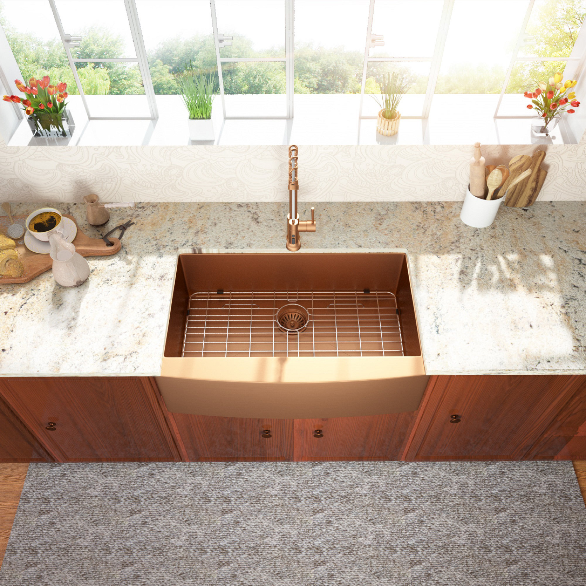 36 Inch Farmhouse Kitchen Sink Gold Apron Front 16 Gauge Stainless Steel Deep Single Bowl Kitchen Farm Sinks