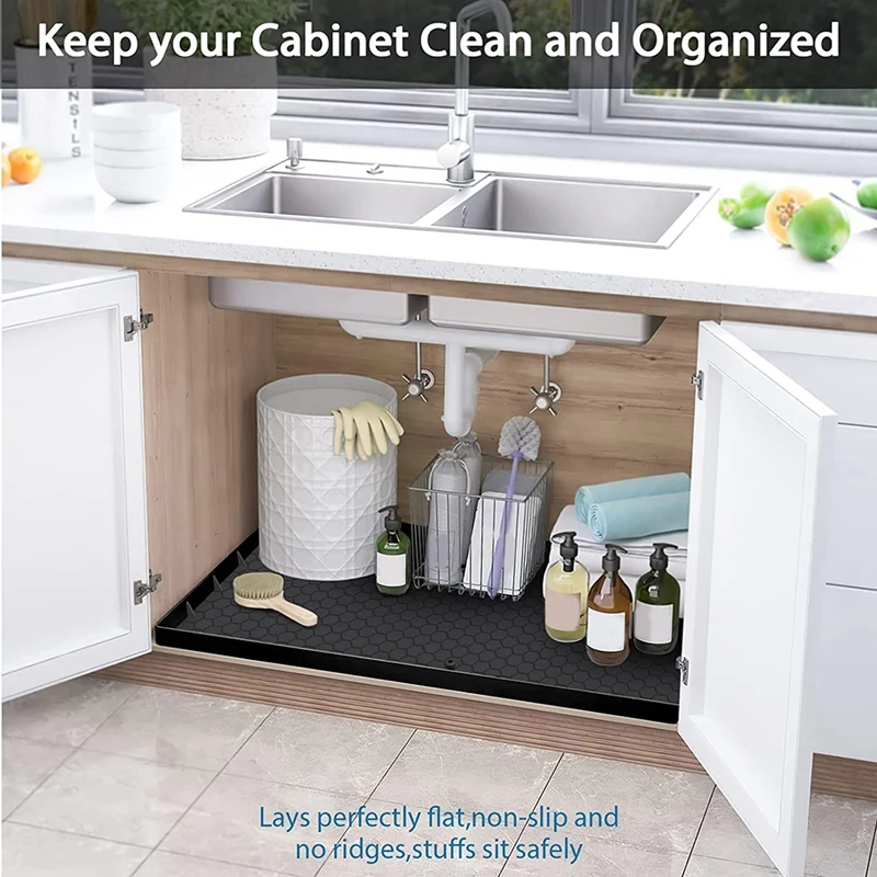 SIKADEER Under Sink Mat for Kitchen Waterproof, 34" x 22" Silicone Under Sink Liner, Hold up to 3.3 Gallons Liquid, Kitchen Bathroom Cabinet Mat and ...