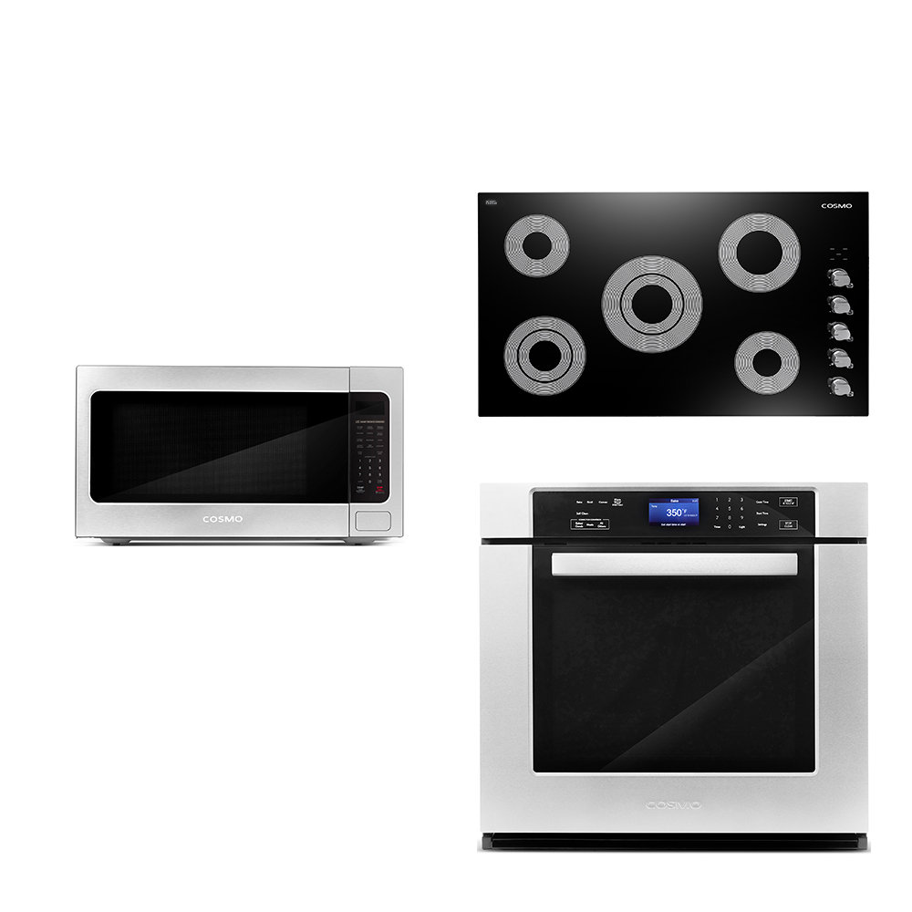 Cosmo 3 Piece Kitchen Appliance Package with 36'' Electric Cooktop , Wall Oven , Built-In Microwave , and Air Fryer