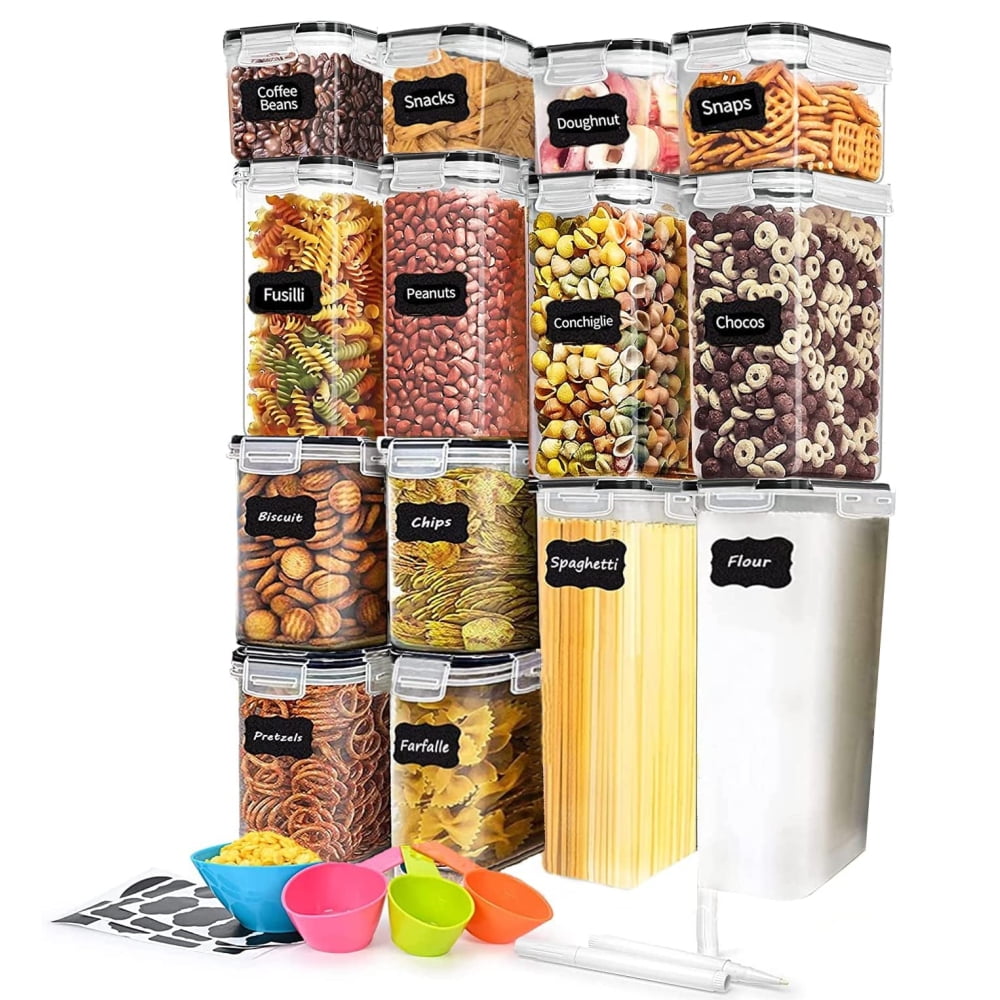 Amazon.com: Large Food Storage Containers 5.2L / 176oz ... Apr 23, 2020 · Amazon.com: Large Food Storage Containers 5.2L / 176oz, Vtopmart 4 Pieces BPA Free Plastic Airtight Food Storage Canisters for Flour, Sugar, Baking Supplies, with 4 Measuring Cups and 24 Labels, Black : Everything Else