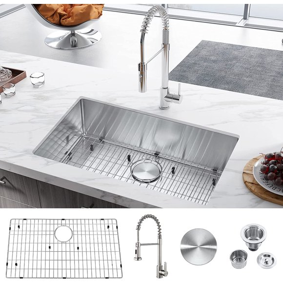 TORVA 28-inch Undermount Kitchen Sink, 16 Gauge Stainless Steel Single ... LARGER AND DEEPER SINK: Upgrade 28 x 18 inch stainless steel sink with 10-inch deep single bowl, allows you to soak and clean large cookware and bakeware. Undermount installation provides you with much counter space, creates a clean, seamless appearance between the sink and countertop.