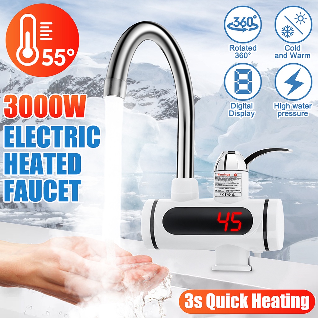 3000W Electric Kitchen Water Heater Tap Instant Hot Water Faucet Heater Cold Heating Faucet Tankless Instantaneous Water Heater