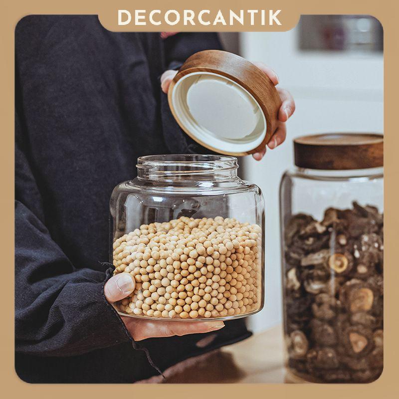 KKC Borosilicate Glass Storage Jars with Wooden Lids,Glass Food Storage Jars Airtight Lids,Kitchen Storage Glass Canister Container,Wood Top Jars for ...